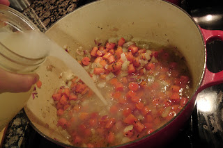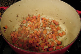 Saute onions and carrots in your choice of fat until onions begin to turn translucent. Add Parsley (however much you want! I used about 1 Tbsp dried).